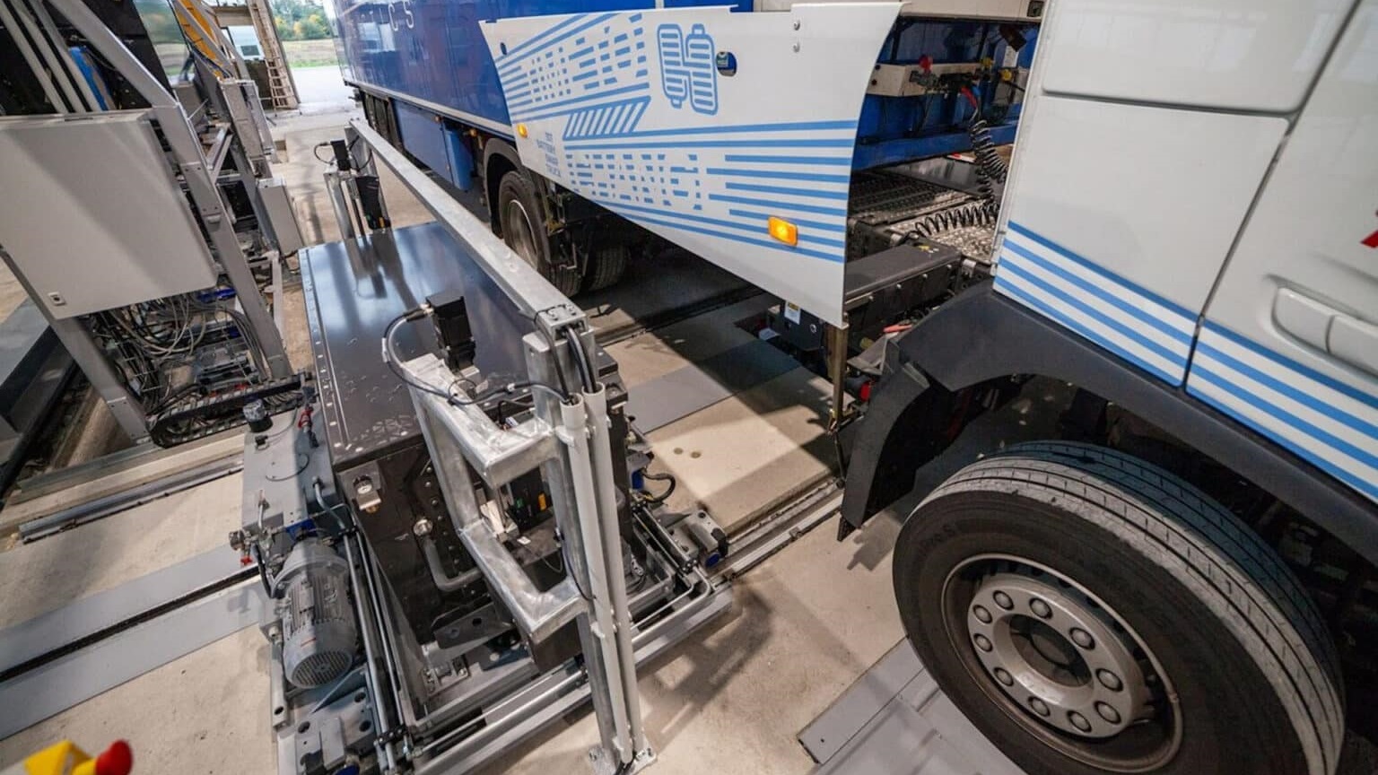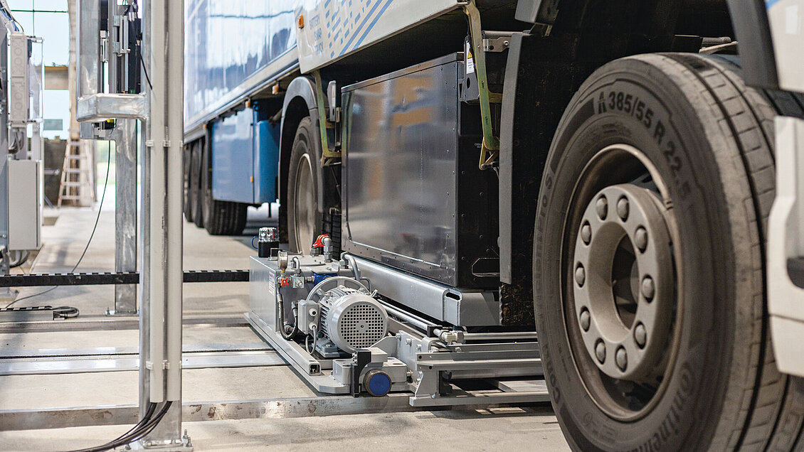 Erste automatische Batteriewechselanlage für E-LKW in Betrieb