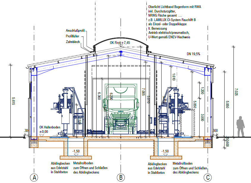 - Ein- und Ausfahrt beidseitig mit Rolltoren